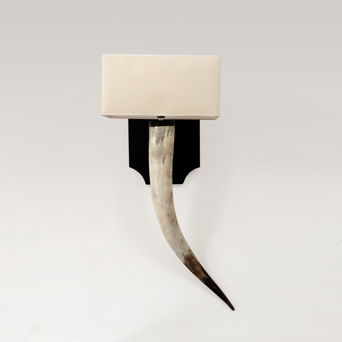 Very effective and unusual wall sconces. Every pair of these Ankole cow horns is slightly different with wonderful gradations of colour.