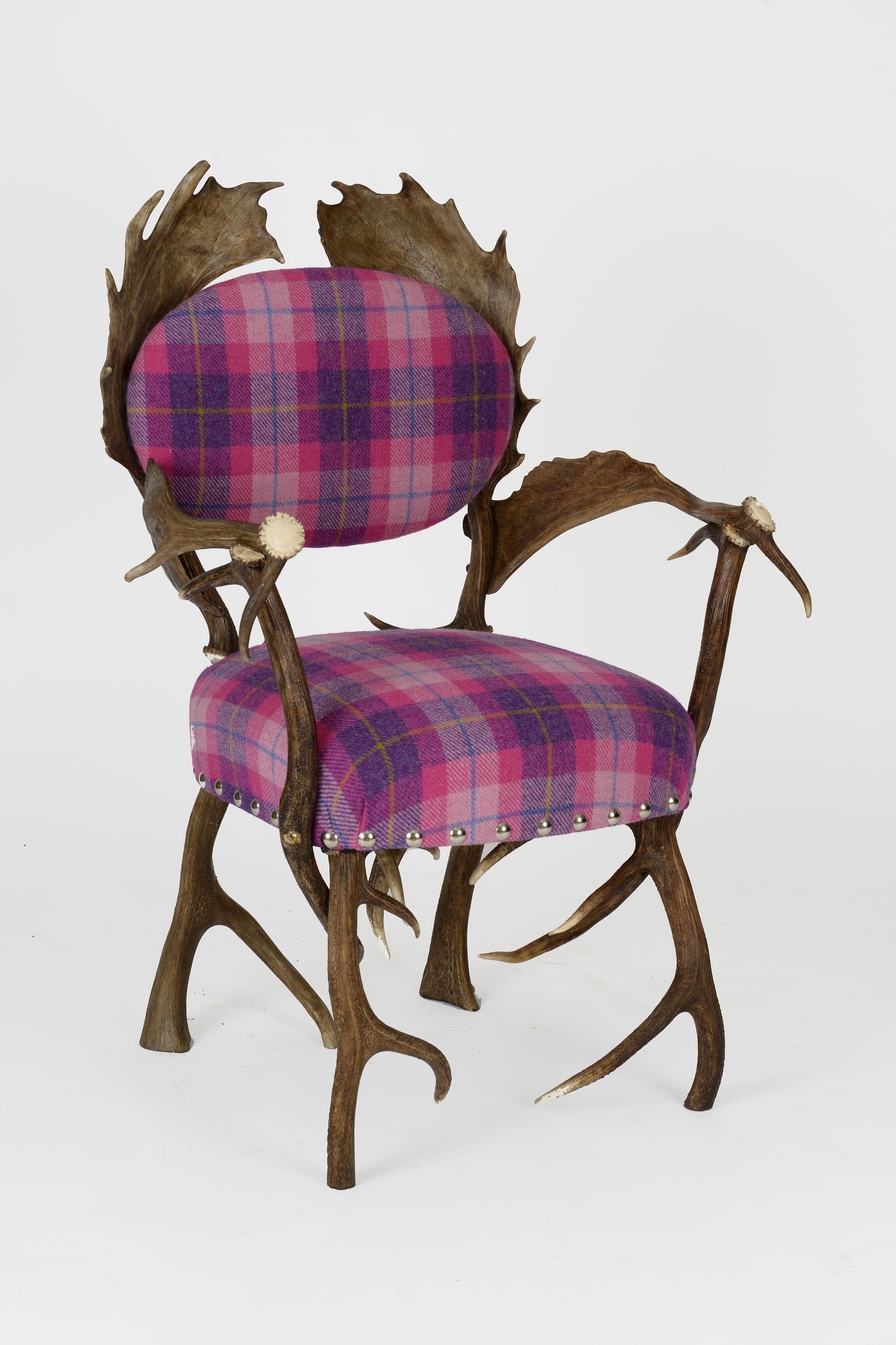 Our most popular Antler Chair, made with a combination of Red and Fallow antlers. It can be used as a dining chair or side chair. Any fabric, leather or cowhide can be used for the upholstery.