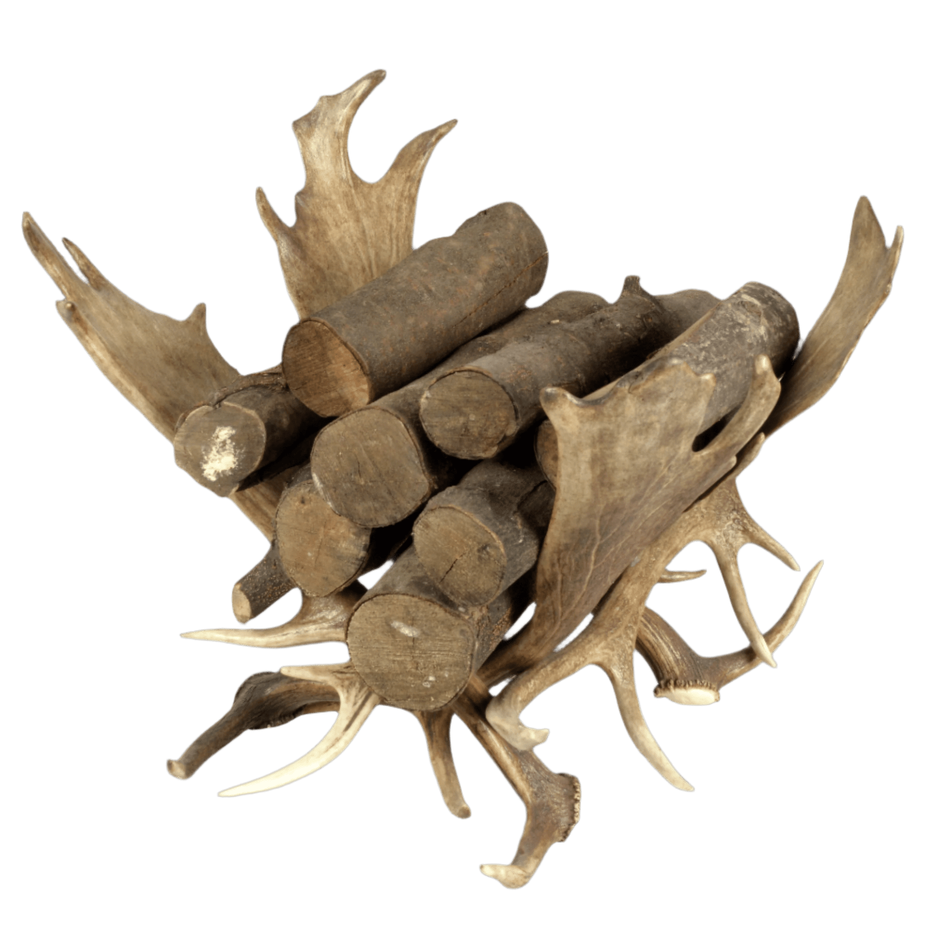 This Antler log basket is an original way of storing timber beside your fireplace. It is made from Fallow antlers.