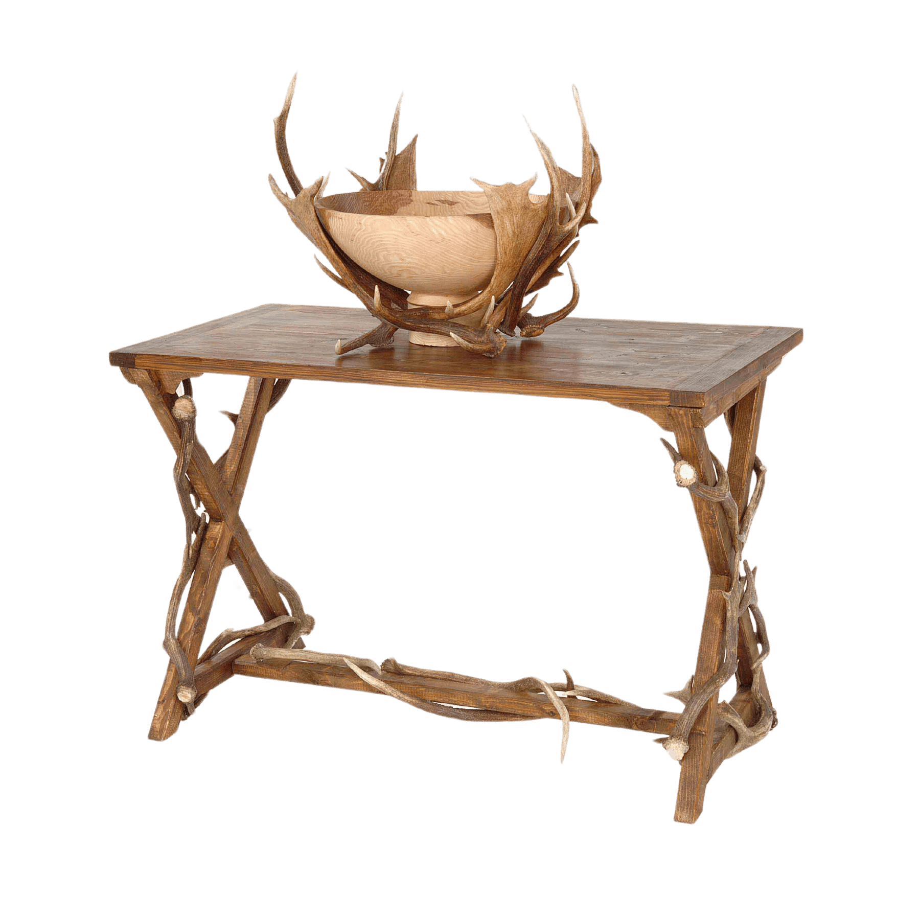 A simple console table made more interesting by adding Fallow & Red Deer Antlers to the legs and stretcher. This design can be made other sizes to order and stained any timber colour.