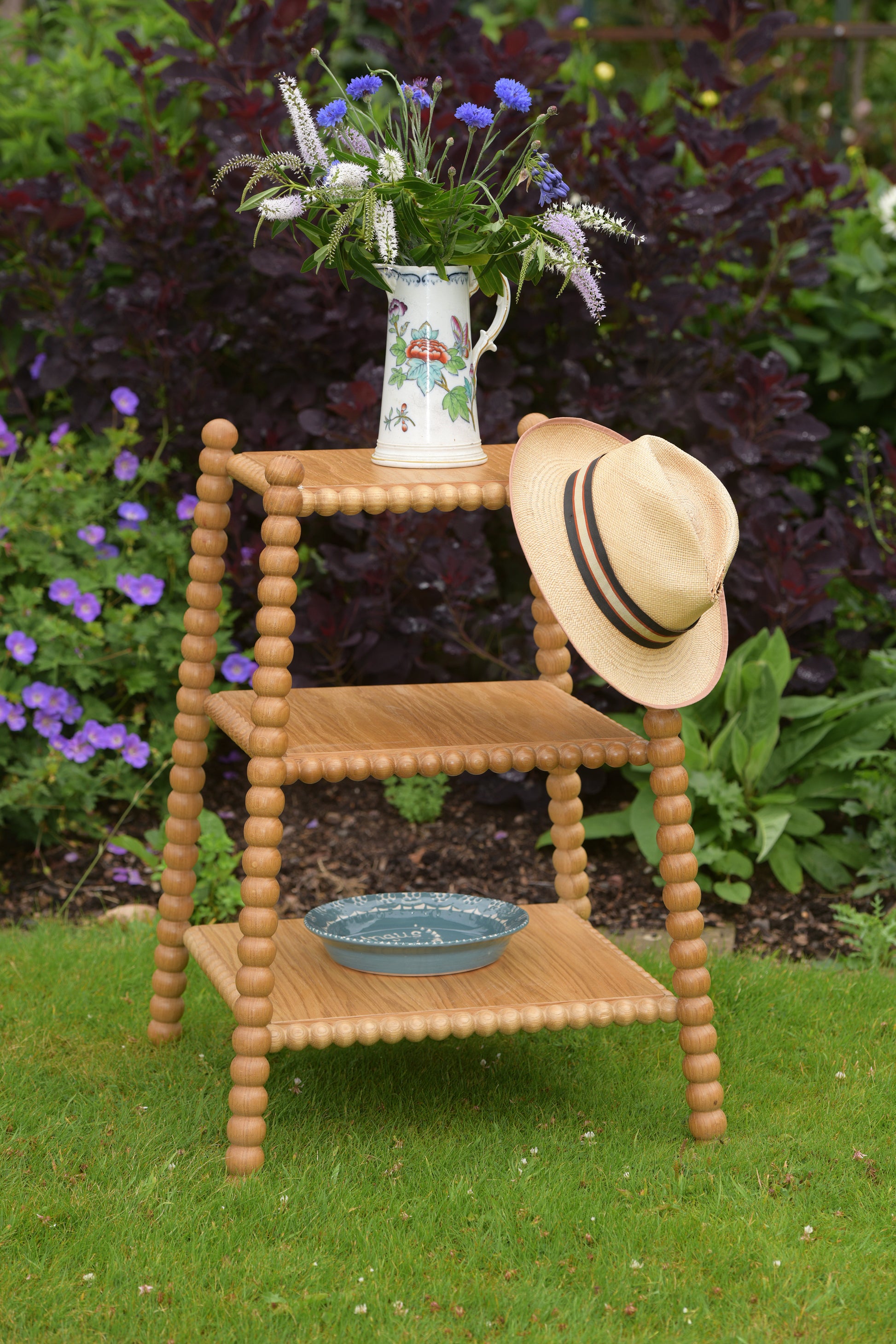 This beautiful 3 -Tier Bobbin side table is made in oak. It works well as both a lamp table and a bedside table. The timber can be stained darker, or it can be painted any colour.