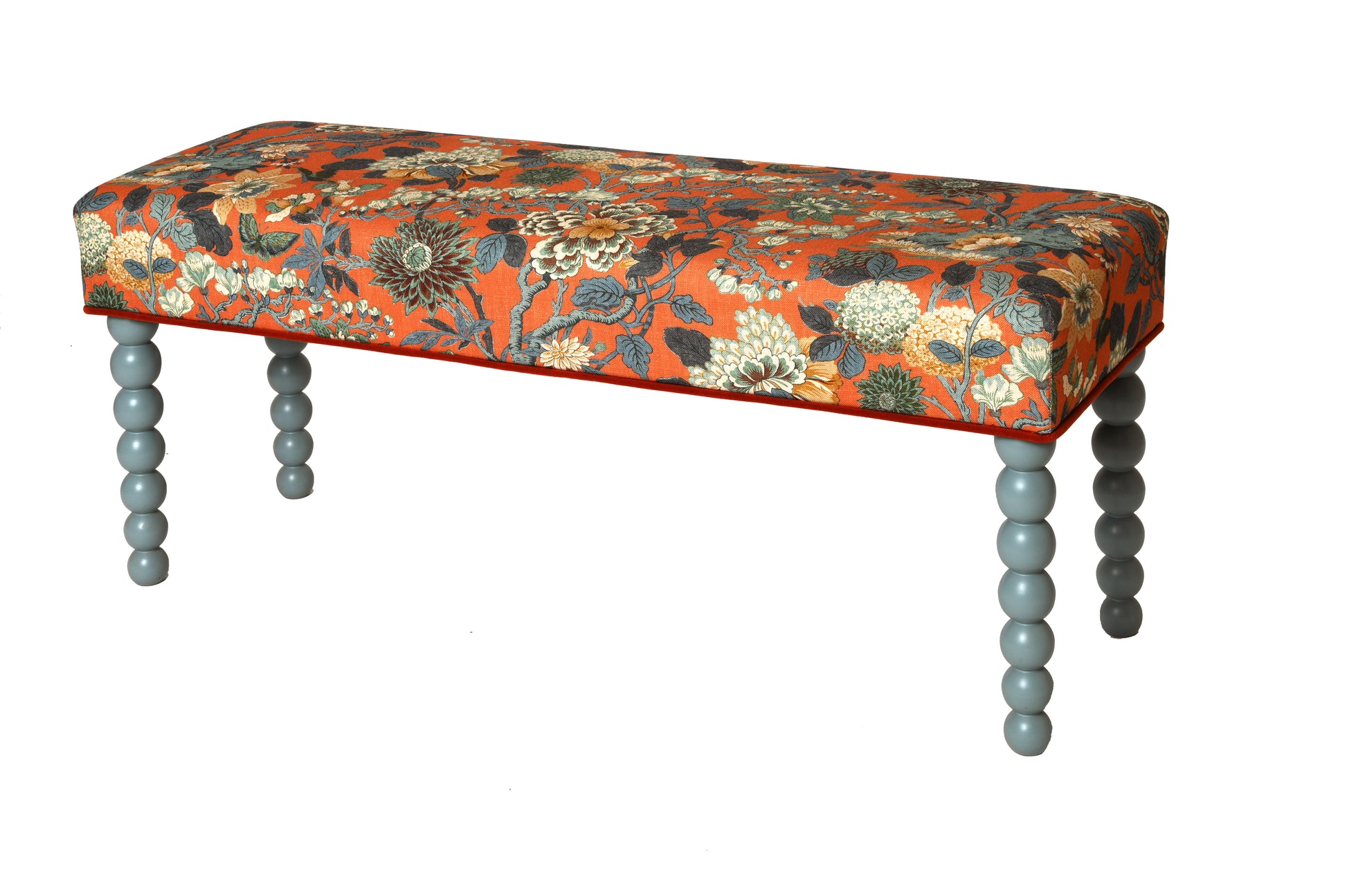 This Bobbin stool can be made any size to order and is very adaptable. It works both as a large coffee-table stool and a longer/thinner stool for the end of a bed. The legs can be timber stained or painted any colour .