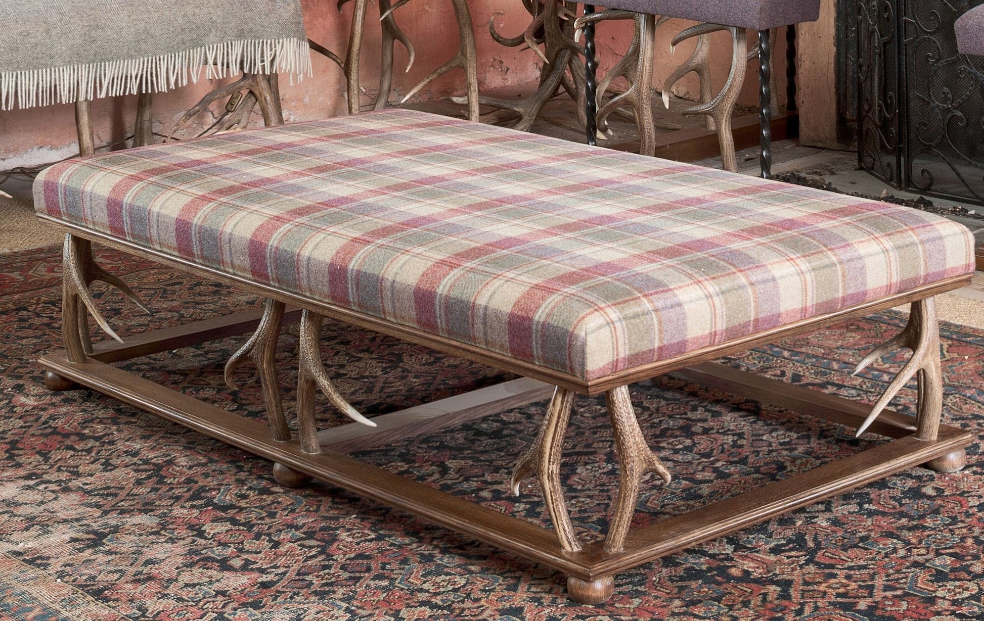 The Cairngorm stool is the most contemporary looking of our Antler stools. The grey oak finish complements the colour of the Antler. It can be made any size to order.