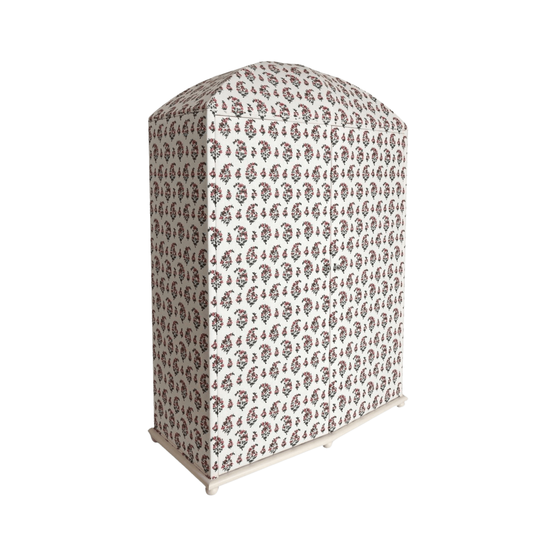 Upholstered cupboards are a really attractive piece of furniture in any bedroom and one of our most popular products. They are covered & lined in customer's choice of fabric, and the timber base and internal spars are painted to match. Made to order with any configuration of hanging space and shelves