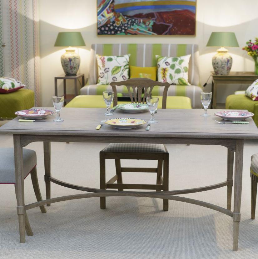 A lovely 6-seater dining table with interesting curved stretcher. It is made in oak.