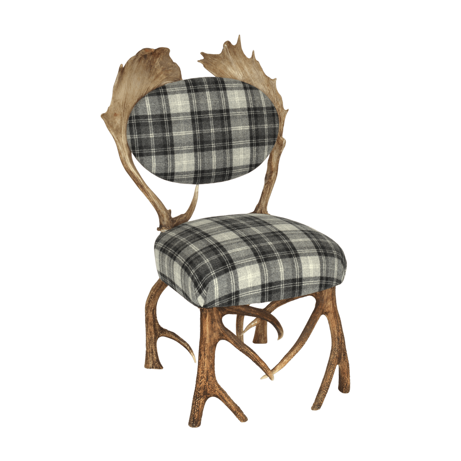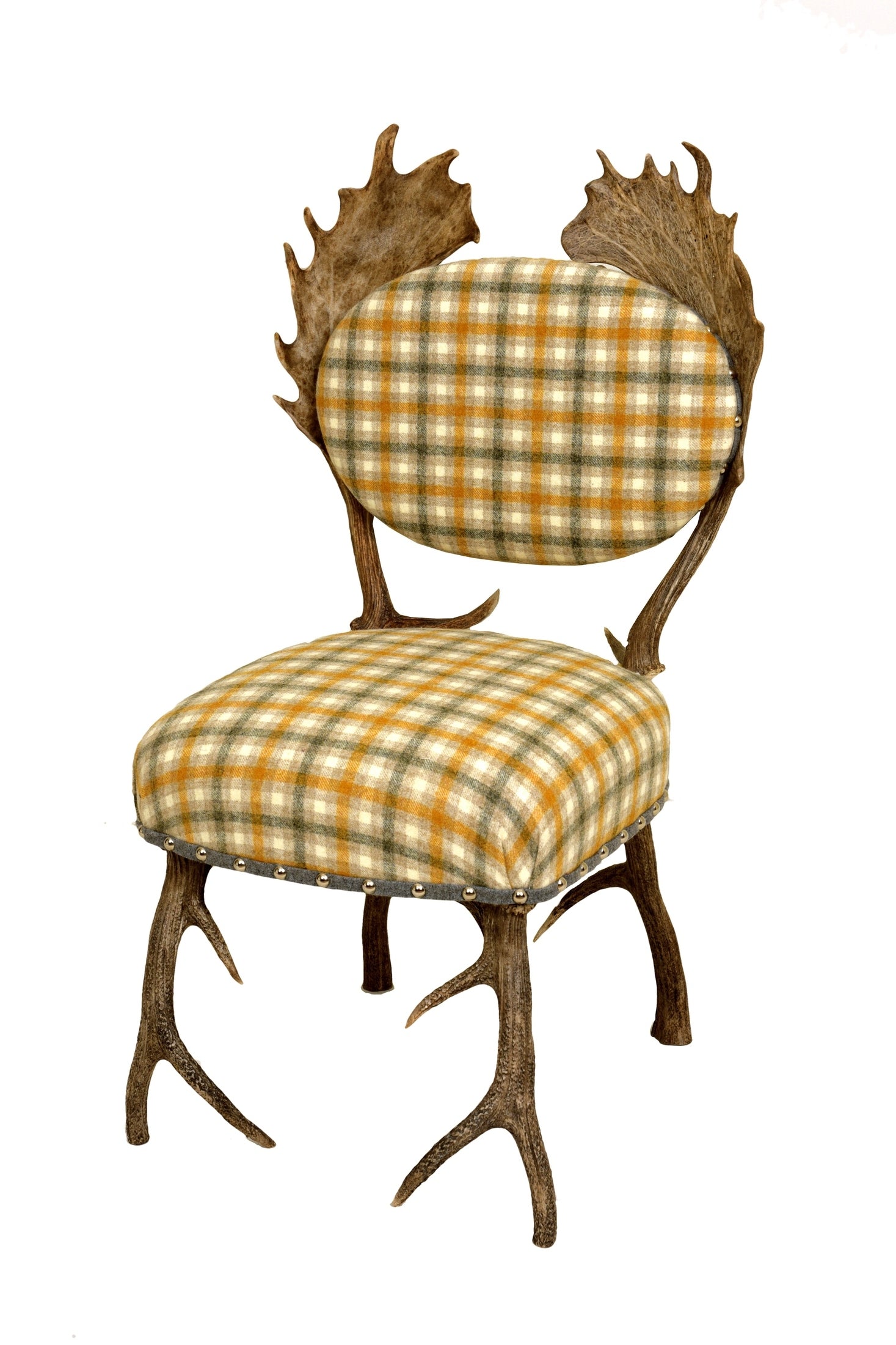 A solid antler side chair made from a combination of Red and Fallow antlers. These chairs can be upholstered in any fabric or leather.