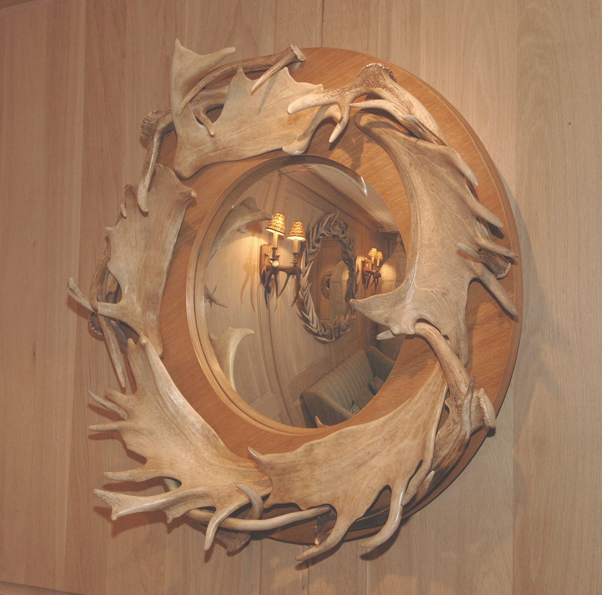 Fallow Antlers curve elegantly on this round mirror to make a very organic shape. It can be made with different timber colour.