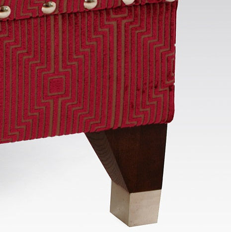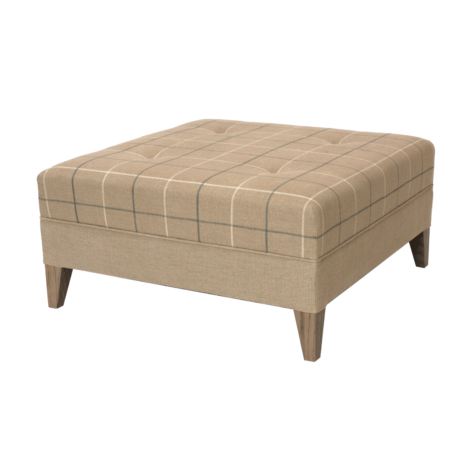 This deep upholstered Hailes stool has tapered oak legs. It can be upholstered in two sections, or all in the same fabric. Shallow buttons in the top add interest.