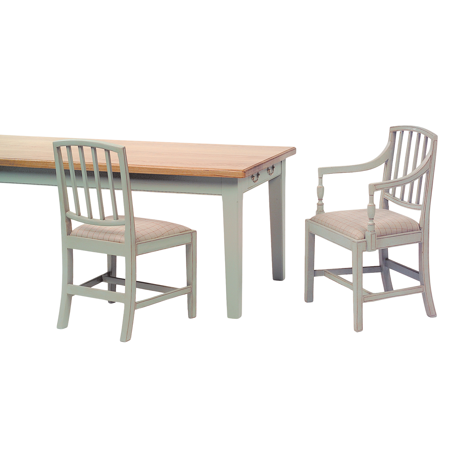 With an oak top and oak or painted legs, this is the perfect kitchen table. It can be made any size to order. Drawers either end are optional.