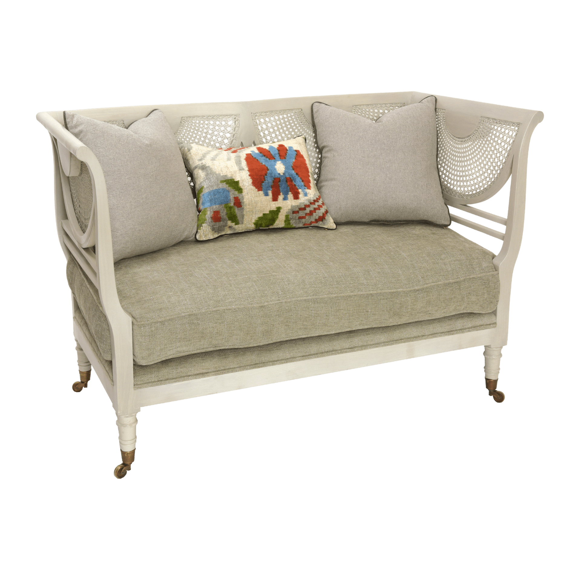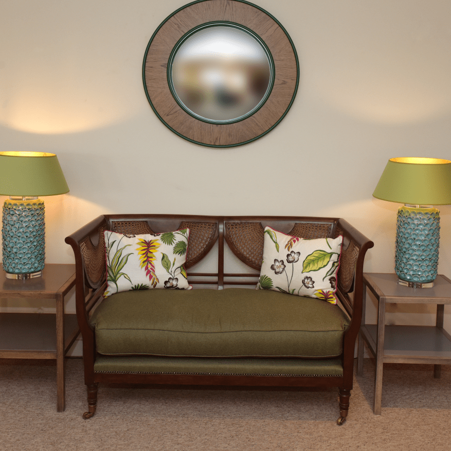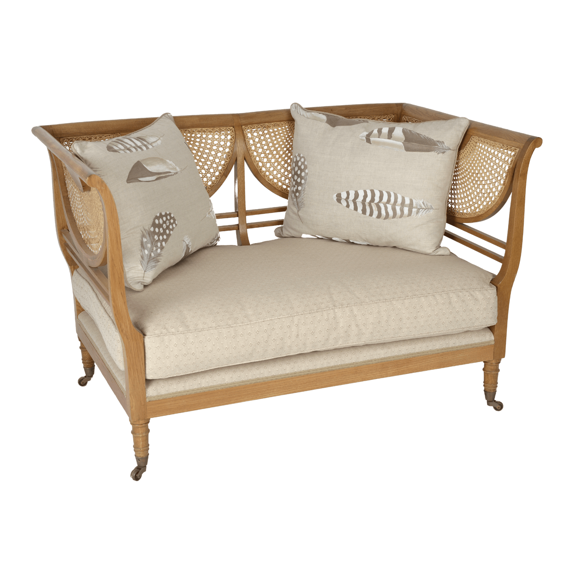 This attractive settee is available in either oak or mahogany with fan-shaped canework in the back and sides. It's an extremely comfortable settee for 2 people but only 140cm long so idea for any room where space is at a premium.