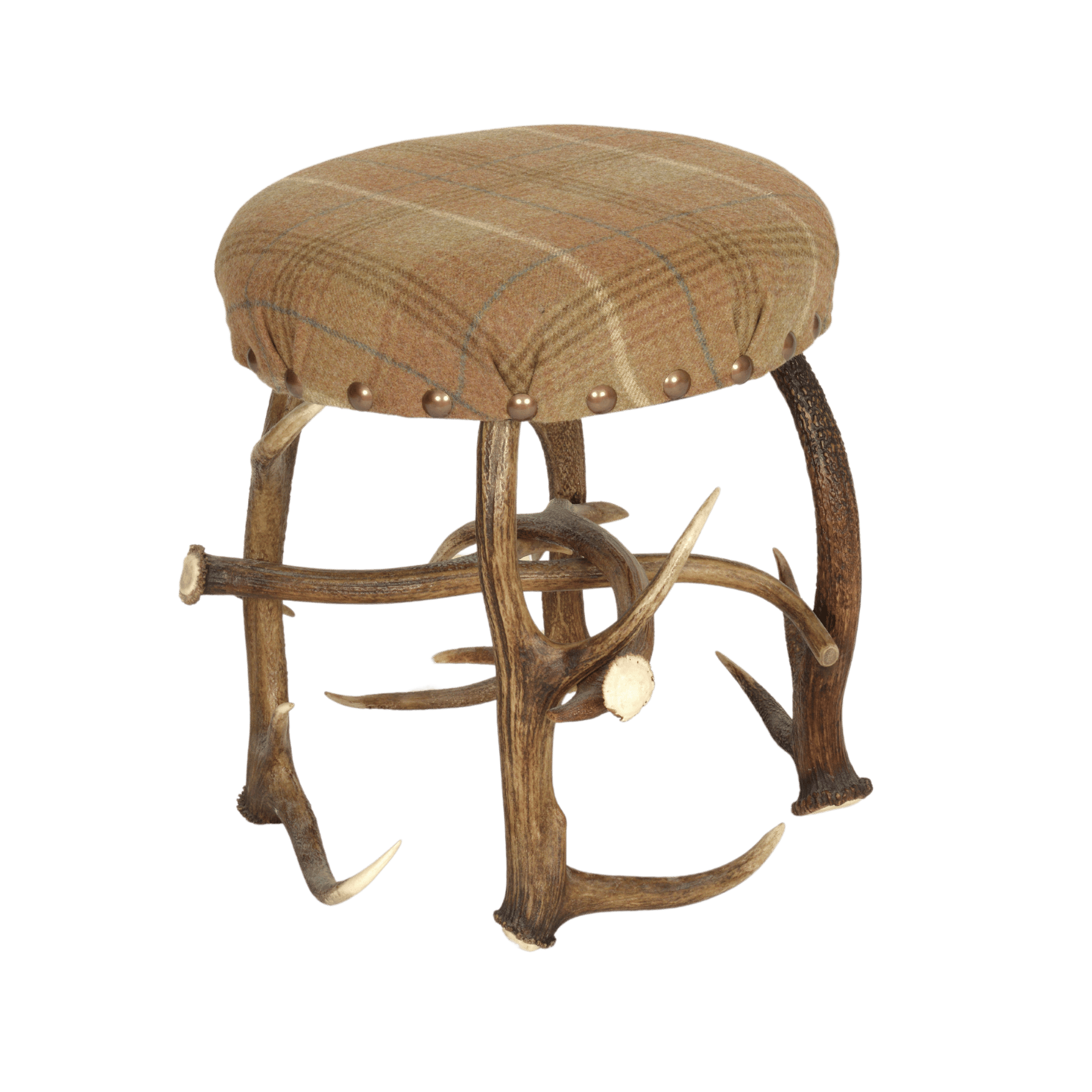 An attractive incidental stool / footstool / extra seat. The Oban stool is made from 6 Red Deer Antlers - the perfect way to bring a touch of Scotland into your living room. It can also be painted.