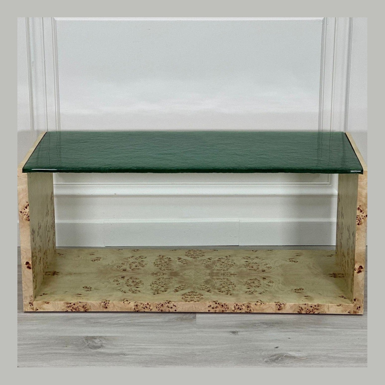 A contemporary poplar burr coffee table, with simple lines which allow the burr to shine. A beautiful focal point to the room, particularly when the sun shines.