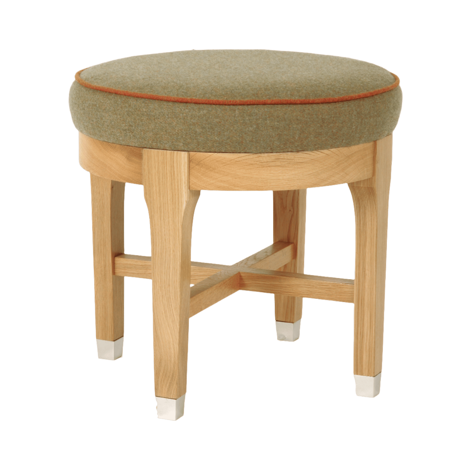 The Scott stool is useful extra seating. It's a smart design, and the nickel caps give a neat finish to the tapered oak legs.